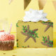 Estrelas do mar Papel de embrulho de Natal num rolo de cor amarela ouro. O papel de qualidade tem um grande padrão de estrelas-do-mar castanhas realísticas embrulhadas em sagrado verde com morangos vermelhos. Este artigo vem em comprimentos personalizados.