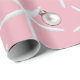 Papel de embrulho de Natal cor-de-rosa com estrelas brancas grandes e design de ornamento. Uma cor de feriado não convencional com design significava para aqueles que vivem num clima quente. Escolha um comprimento de rolagem e impressiona os destinatários com este papel de embalagem de alta qualidade.