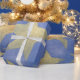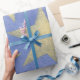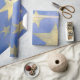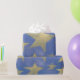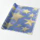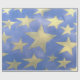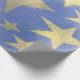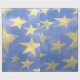 Este papel de embrulho apresenta estrelas douradas brilhantes e estêncilhadas sobre fundo azul. Pode ser usado para um tema patriótico ou para a maioria das outras ocasiões.