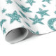 Papel De Presente Stars Moon Sparkly Teal Aqua Blue White