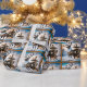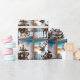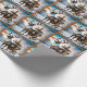 Esta design divertida tem uma rena de galo puxando um carrinho de metal com rodas.