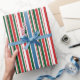 Papel De Presente Stripes brancas verdes vermelhas