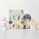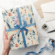 Sudoeste embrulhando papel em azuis e terracota desérticos, destacado por flores pintadas em vermelho, azul e marfim.