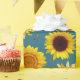 High quality, heavy-duty wrapping paper with sunflowers design in a seamless repeating pattern. The big yellow garden flowers are printed over a cool, gray-blue. Choose any roll length, with paper that comes in matte or glossy finishes.