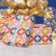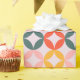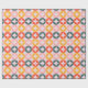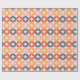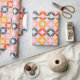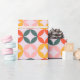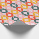 The paper features a large-scale, mid-century modern geometric pattern consisting of overlapping circles that form rounded diamond shapes in the center. The design uses a coordinated mix of muted coral, sunny mustard yellow, and sage green set against a soft lavender or pale pink background. Perfect for birthdays, holidays, or everyday gifting, this design adds a joyful pop of color to any present—no extra embellishments needed.