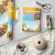 Dê aos seus presentes um toque tropical com este vibrante papel embrulhado na praia. Apresentando uma ilustração impressionante de tais cabanas, palmeiras balançando, e um pôr do sol espantoso sobre o oceano, esta design traz o calor de um paraíso costeiro para qualquer ocasião. Perfeito para aniversários, feriados, casamentos e celebrações especiais, este papel de embrulho adiciona um talento único e exótico aos seus presentes. Quer você esteja embrulhando presentes para um amante de praia, viajante, ou alguém que goste de estética tropical, esse papel de alta qualidade fará cada pacote sobressair. Elevem seu dom com esta na moda e design de inspiração na ilha.