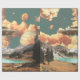 Papel De Presente Surreal UFO Above Mountain Lake with Planets
