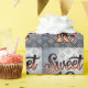 A stylized typographic design featuring the text "Sweet 16" in a flame effect. The word "Sweet" is written in a decorative, cursive font style with black outlines, while the number "16" is written in bold black numbers with flame effects. The flames are rendered in vibrant orange and red colors with black outlines, creating a gradient effect that transitions from darker at the base to lighter at the tips. The flames wrap around the letters and numbers, giving them a burning, dynamic appearance. The entire design is set against a pure white background. The typography has a retro, vintage aesthetic with sharp, clean lines and a bold, impactful style. The composition is centered in the frame with the text taking up approximately 60% of the image space.
