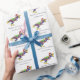 Papel de embrulho personalizado de Natal com dinossauro engraçado T-Rex Santasaurus presente de Natal branco