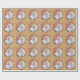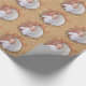 Este papel de embrulho de presente de Natal apresenta um gráfico de um ornamento de árvore redonda com um quadro fotográfico personalizado. As palavras "Feliz Natal" circulam na parte de fora da fotografia. O fundo é marrom-claro com pontos brancos de floco de neve. Fotografia © Storytree Studios, Stanford, CA