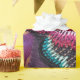 Matriz de tecido bordado de cor rica e papel de embrulho de impressão rosa. Em cores roxas, cor de lacre, laranja, pinças, verde e dourado. Impressão boêmico rico.