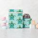 Design de plástico de presente com molho de prenda apresenta pequeno padrão azul-esverdeado de tartarugas em fundo aqua