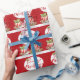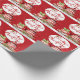Um papel de embrulho divertido para a época de Natal e perfeito para alguém que é amante do chá, apresentando um bule de chá vermelho e branco listrado e uma xícara de chá com bolinhas e mensagem de: "Tea-Riffic Christmas".