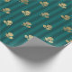 Papel de embrulho de turquesa ventiço e de padrão listrado de ouro.