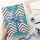 Azul e Cinza - Um padrão de zag arrojado em cores frescas e alegres. Se precisar ajustar os monogramas, clique no botão personalizar e faça alterações.