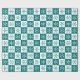 Flocos de neve brancos e lacrimejantes alternam em quadrados azuis-esverdeados e brancos para criar um padrão geométrico na moda perfeito para o Natal. Para ver o design original em outros itens, clique no link "Artes Rocklawn". Copyright ©Claire E. Skinner. Todos os direitos reservados.