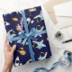 O desenho do tema astronauta no espaço com imagens repetidas de astronautas, luas, planetas com anéis, satélites, canistres de oxigênio, estrelas, raios, asteroides e foguetes.