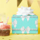 Papel De Presente Tema Azul Água Azul Glam com Laço Branco Pérolas
