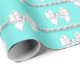 Papel de embrulho Tema Azul Água Azul Glam com Laço Branco Pérolas para presentes de aniversário, chá de bebê, chá de noiva, presentes de casamento ou qualquer ocasião especial. Perfeito para uma festa temática turquesa elegante e divertida ou presente feminino, talvez até luxuoso!