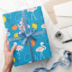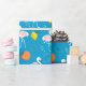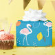 Papel De Presente Tema tropical Frutas Flamingo em fundo azul