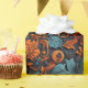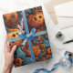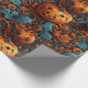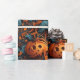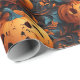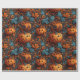 Este vibrante papel embrulhado no tema do Dia das Bruxas apresenta um padrão ininterrupto e altamente detalhado de abóboras de laranja esculpidas interligadas com florescimento botânico de cor azul e laranja. O rico contraste entre os tons quentes de abóbora e as folhas legal de focas cria um design perfeito e impressionante para o empacotamento de presentes durante a temporada de outono, festas de Halloween ou festas festivas de outono.