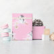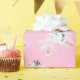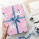 Stork voando em nuvens com bebê em um cobertor em fundo cor-de-rosa para a dádiva de bebê A cor de fundo pode ser alterada.