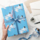 Cave com o bebê em nuvens sobre fundo azul. A cor de fundo pode ser alterada.