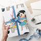 A imagem adorável, retro de uma menina que come o chá com seu cão é caracterizada neste papel de papel de embrulho. Se para crianças, chá ou amantes do cão esta é uma maneira doce de dar esse presente especial!
