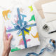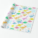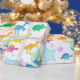Papel de envolvimento bonito dos dinossauros. O teste padrão bonito com o T-Rex de sorriso feliz, Stegosaurus dos dinos da cor, Parasaurolophus e o Diplodocus com teste padrão de estrelas da cor imprimem o papel de envolvimento do dinossauro para seus presentes de aniversário e presentes de Natal. Este papel adorável do presente do dinossauro dos desenhos animados é inteiramente customizável, personaliza com seu nome, adiciona seus textos e imagens!