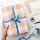 Um teste padrão clássico da verificação do búfalo no pêssego e no branco faz a um agradável todo o papel de embrulho da ocasião.