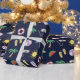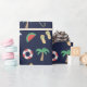 Papel de embrulho temático do feriado azul escuro com colagem ilustrada colorida da praia.