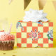 Um desenho do teste padrão dos budgies no estilo bonito do manga com teste padrão alaranjado do verificador para o fundo. Caracterizando muitas cores da mutação do budgie: verde, amarelo, branco, azul, violeta e malva.