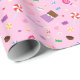 Um papel de envolvimento colorido e bonito do teste padrão dos doces para uma menina doce do aniversário! Os doces assorted incluem pirulitos, chocolate, bares de chocolate, doces do milho, doces envolvidos nos twirls e listram padrões. O fundo cor-de-rosa doce e feminino faz grande para as meninas que são amantes dos doces ou têm um guloso!