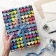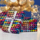 Os corações femininos e coloridos do arco-íris modelaram o papel de envolvimento com um fundo preto.