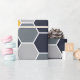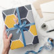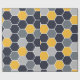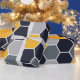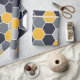 Um teste padrão elegante do hexágono em tons azuis, cinzentos e amarelos.
