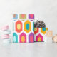 Um teste padrão tribal do ikat em um arco-íris das cores - cor-de-rosa, alaranjadas, amarelas, verdes, do azul e do roxo. As cores são inspiradas por um teste padrão do crochet do smith de avó, ele têm um bocado de uma impressão retro. Este envoltório moderno do estilo é grande para uma variedade de ocasiões tais como um aniversário. É igualmente excelente para miúdos, adolescentes e adultos.