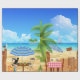 Papel de envolvimento tropical do teste padrão do verão do mar das palmeiras da praia.