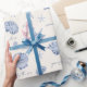 Dê um presente com encanto costeiro usando este papel de embrulho impressionante, apresentando um padrão divertido de conchas, estrelas e texto divertido inspirado na praia. Os tons azuis da safira num fundo de marfim opcional evocam um verão relaxado, a praia house vibe. Este design certamente adiciona calor e caráter a qualquer presente. Procure ID918 para ver outras opções de cor para este design.