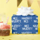Texto branco NICE NUNCA com flocos de neve sobre fundo azul. O texto é editável. A cor de fundo pode ser alterada.