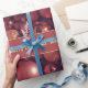 Rosa de decoração de Natal Dourada Baubles Fotografia Elegante Papel de Enfrágio de Presente de Natal com fita falsa e texto personalizado "Desejamos-Lhe Um Feliz Natal! Com amor, a família Williams", você pode mudar ou apagar o texto