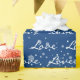 Texto de amor branco com flocos de neve em fundo azul. O texto e a cor podem ser editados. A cor de fundo pode ser alterada.