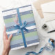 Pasta horizontal azul claro, verde-claro e azul-poeirento, com um padrão riscado e um texto personalizável: Felz pascoa. Clique em editar para alterar o texto e o nome de sua preferência,