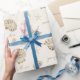 Dê um presente com encanto costeiro usando este papel de embrulho impressionante, apresentando um padrão divertido de conchas, estrelas e texto divertido inspirado na praia. Os tons marrons ouros em um fundo de arenito opcional evocam um verão relaxado, a praia house vibe. Este design certamente adiciona calor e caráter a qualquer presente. Procure ID918 para ver outras opções de cor para este design.