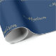 Texto personalizado do nome do script dourado marinho azul de Aniversário Papel de Embraiagem de Presente. texto em ouro falso, fundo azul marinho
