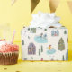 Este charmoso papel de embrulho apresenta uma pintura branca, pintada à mão, de uma aldeia de inverno, pequenas casas, flocos de neve, pinheiros, e um lago gelado com pessoas de patinação em fundo de naves. Você pode mudar a cor de fundo e o texto dizendo "Feliz Natal" obra de arte original de Caroline Bonne Müller