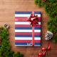 Papel De Presente Texto Dourado do Padrão de Faixa Azul Vermelha Pat