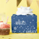 Texto branco NAUGHTY com flocos de neve em fundo azul. O texto e a cor podem ser editados. A cor de fundo pode ser alterada.