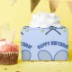Este design desportivo tem um padrão de raquetes de tênis, bolas de tênis e texto cruzados que podem ser personalizados. O fundo é azul claro e o texto azul escuro. A saudação padrão é "HAPPY BIRTHDAY", mas isso pode ser alterado, por exemplo, adicione um nome ou sua própria legenda preferida.