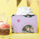 Este bonito papel de embrulho cor-de-rosa e roxo está pronto para você carregar sua foto favorita. O fundo tem um padrão de pequenos corações liláticos dispersos, e corações cor-de-rosa maiores. Adicione a sua saudação, ou use o já preparado "NÓS AMAMOS VOCÊ, GRANDMA!" em cor-de-rosa. [Fotografia © Storytree Studios, Stanford, CA]