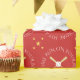 O texto deste papel de empacotamento com tema desportivo pode ser editado para a sua saudação preferida, ou simplesmente usar o documento fornecido: "HIT A HOME RUN ON YOUR BIRTHDAY". Os design mostram morcegos de beisebol cruzados e um beisebol branco. O fundo é vermelho, e há estrelas amarelas para adição de decoração.